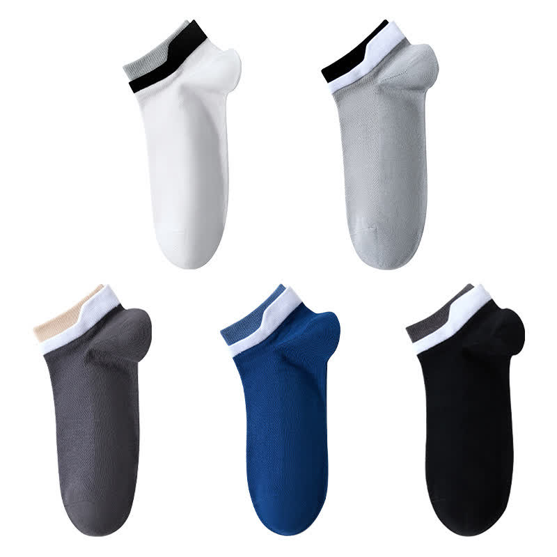 Plusock Mesh Breathable Pure Cotton Spliced Ankle Socks(5 Pairs)