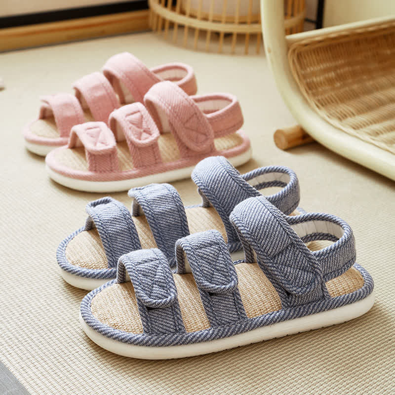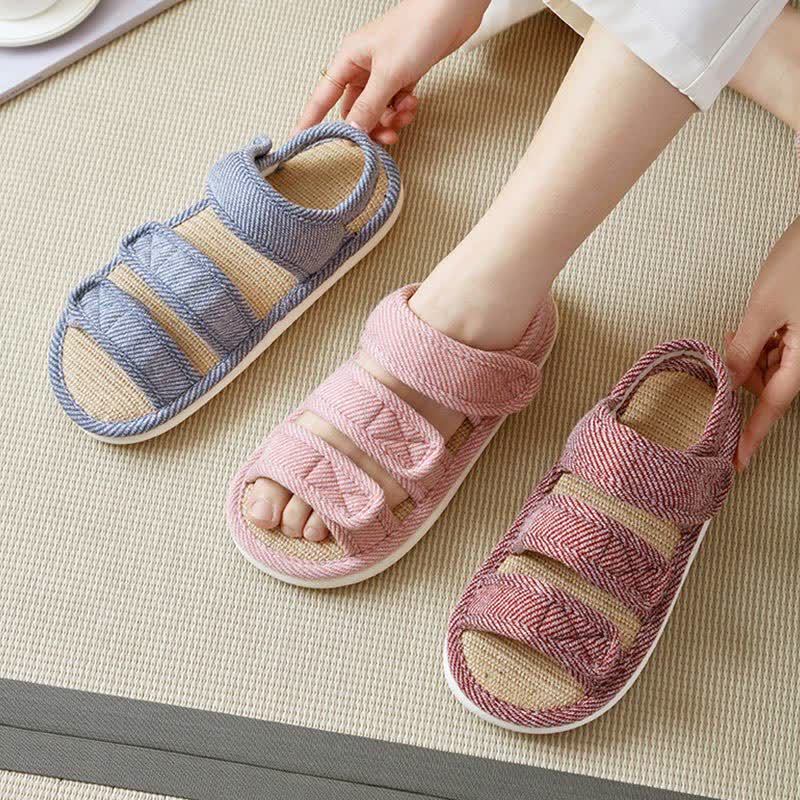 Plus Size Breathable Velcro Linen Slippers