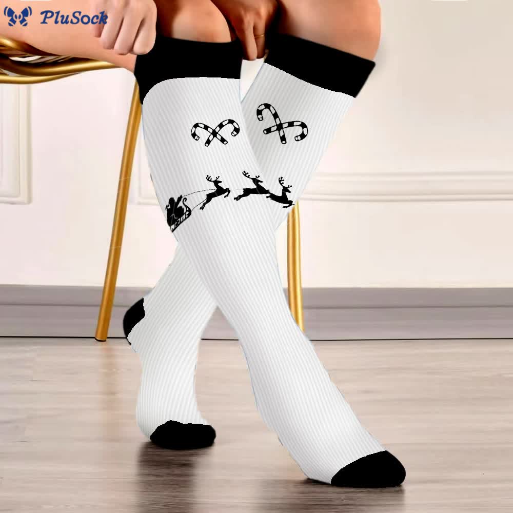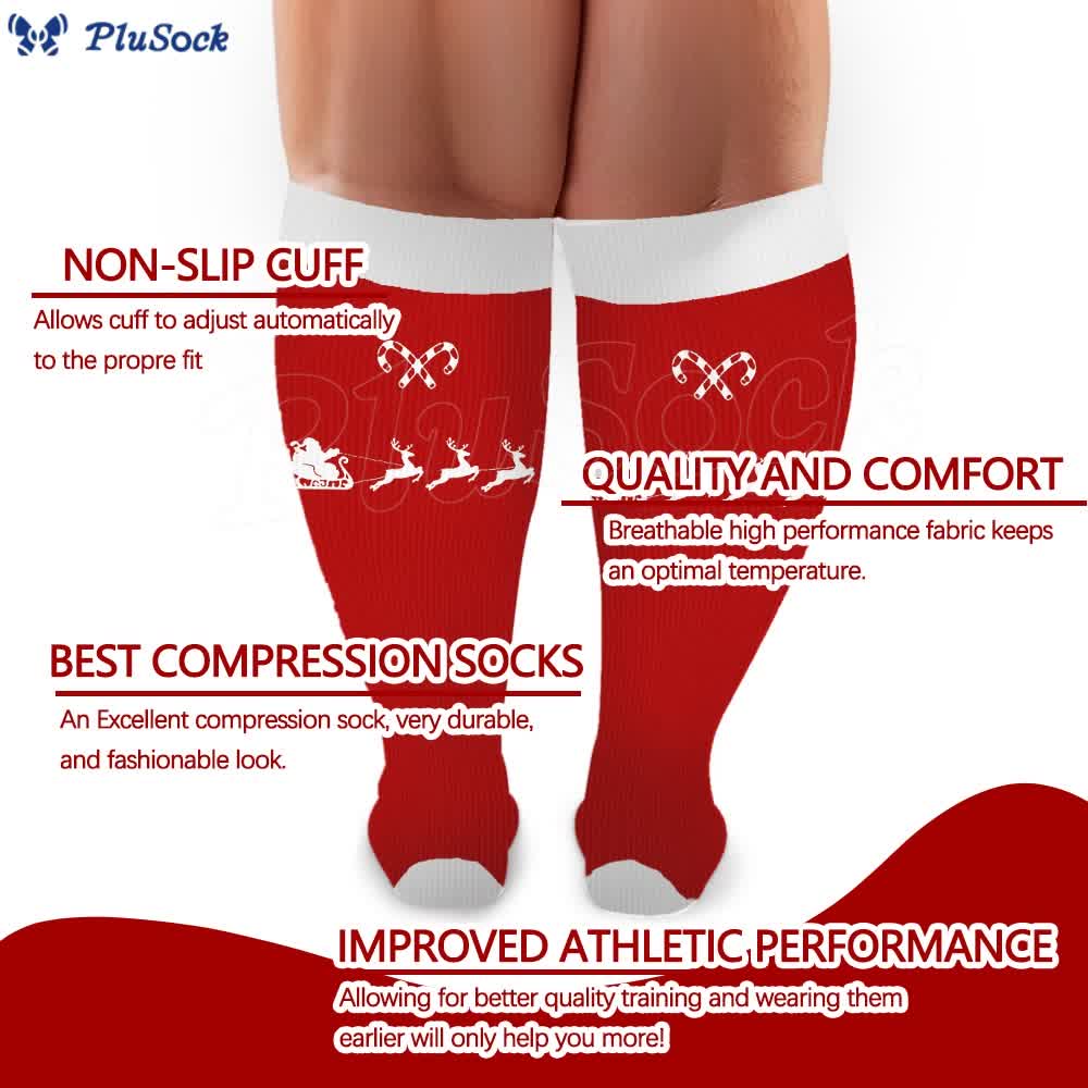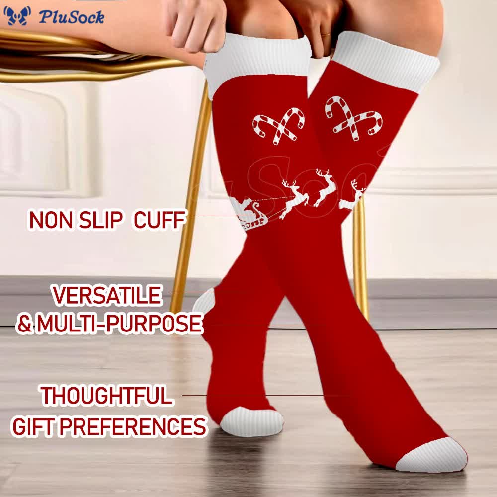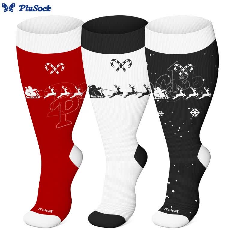 Plusock Plus Size Candy Cane Elk Compression Socks