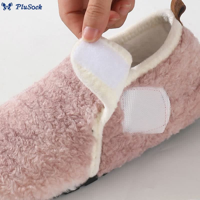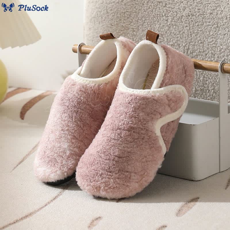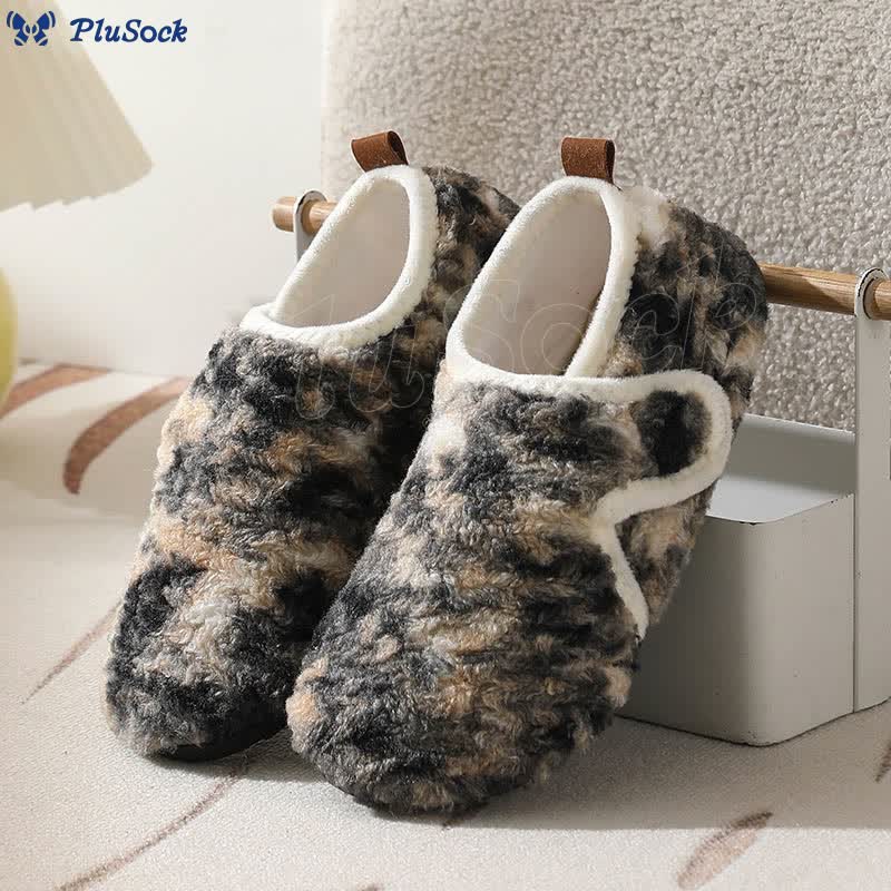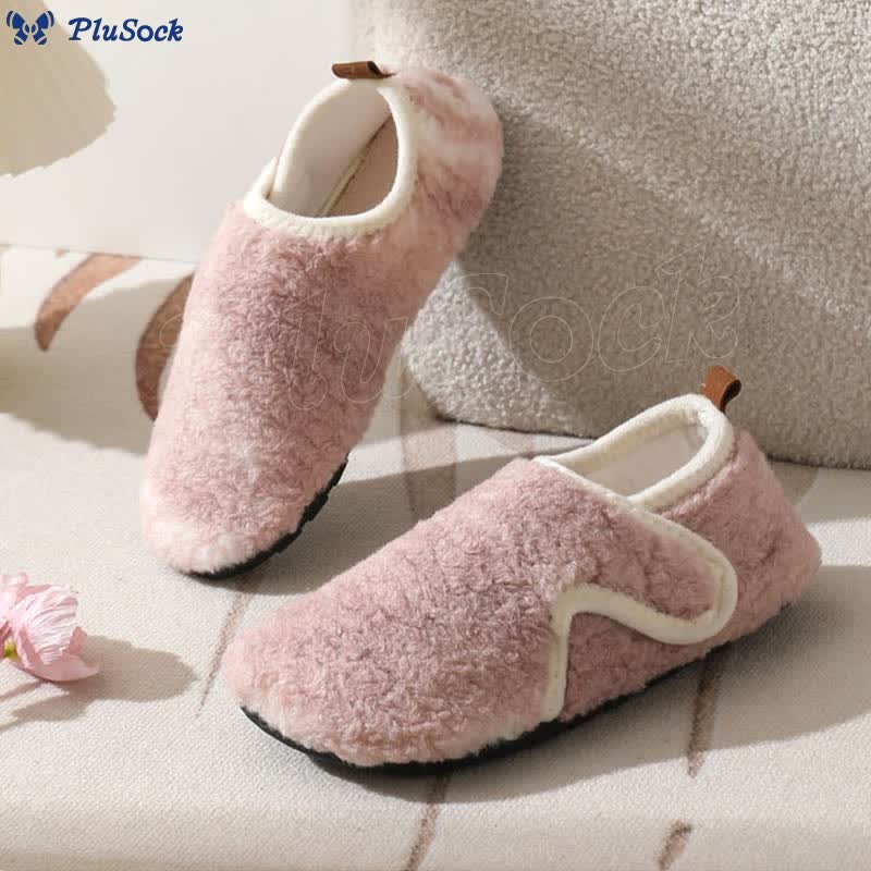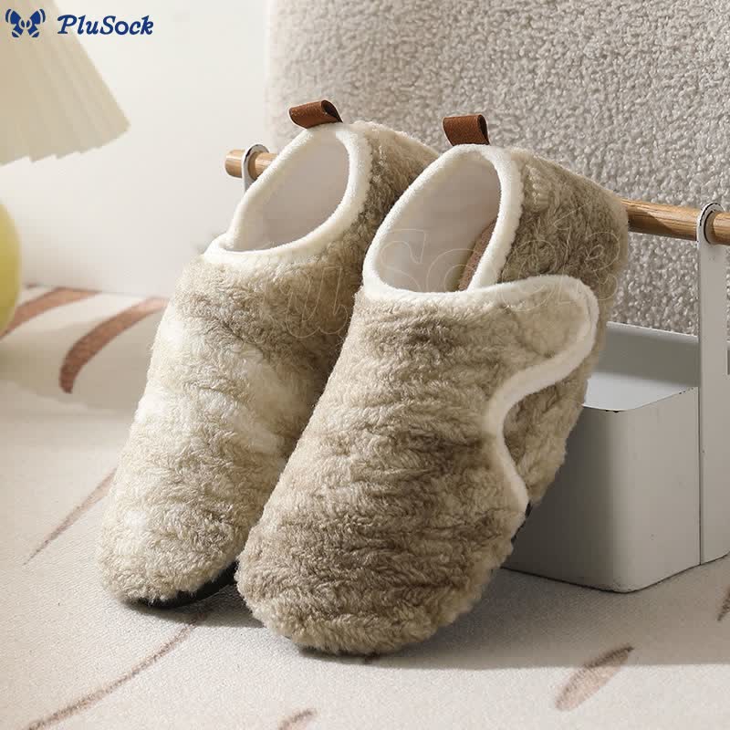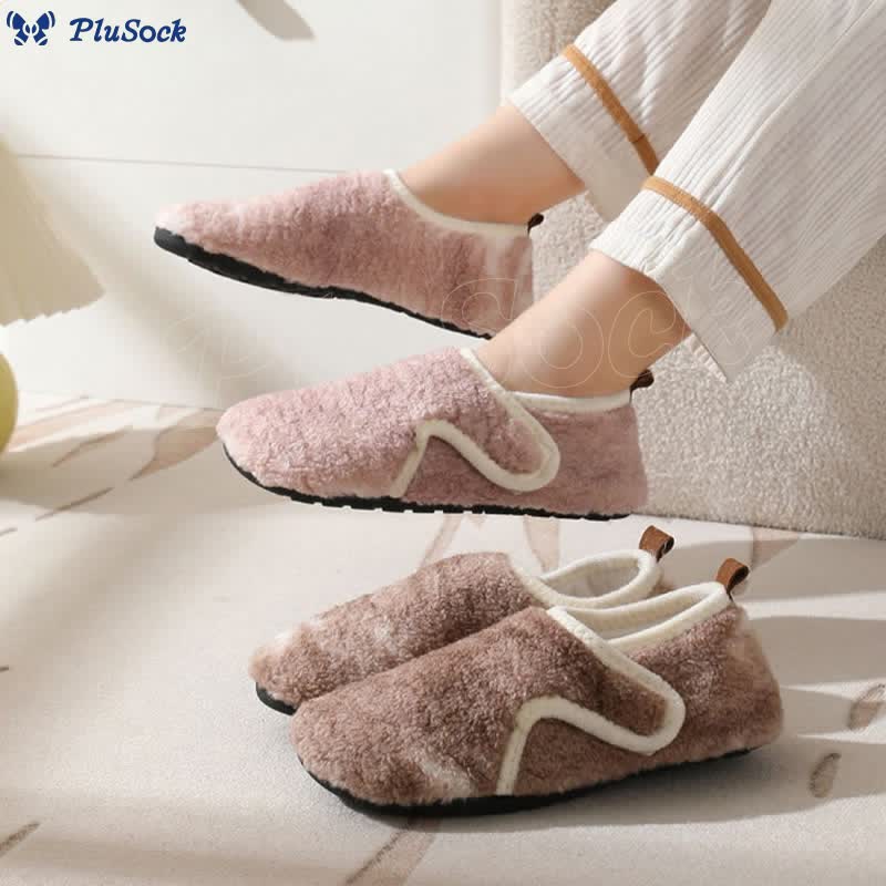 These house slippers keep your feet warm and cozy, offering comfort for chilly evenings. They're designed for wide feet and are perfect for relaxing at home or in a cabin. Anti-skid grippers on the sole provide excellent traction on smooth surfaces, preventing slips. Ideal for those who love barefoot-style shoes, these fuzzy slippers are perfect for anyone needing warmth and comfort.