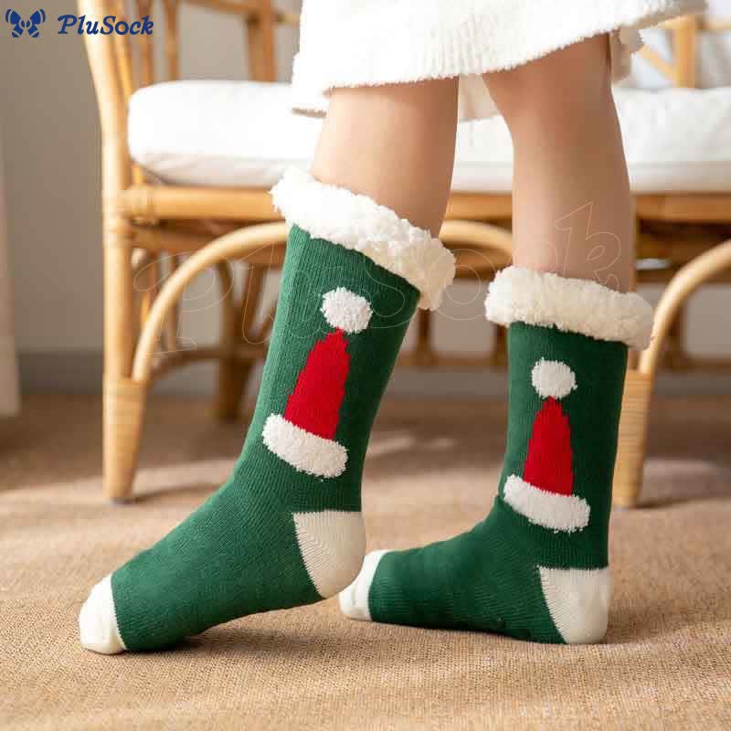 Plusock Plus Size Santa Hat Slipper Socks(2 Pairs)