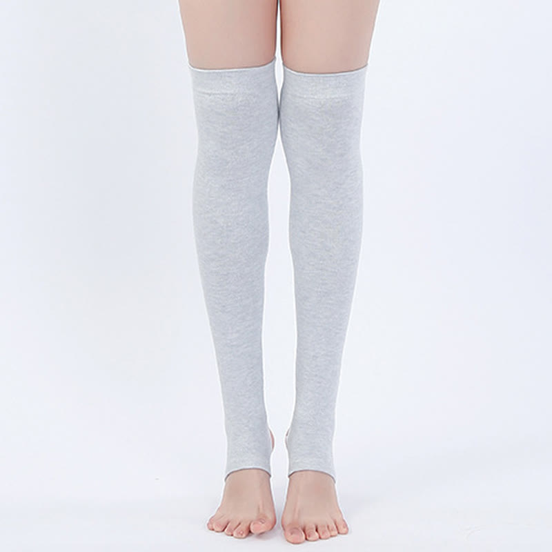 These thigh sleeves are made from pure cotton, offering a soft, breathable, and comfortable feel. They feature a stirrup design that wraps under the foot for a secure fit and a non-slip function to keep them in place. Perfect for providing support and coverage from the calves up to the thighs during workouts, dance practice, or daily wear.