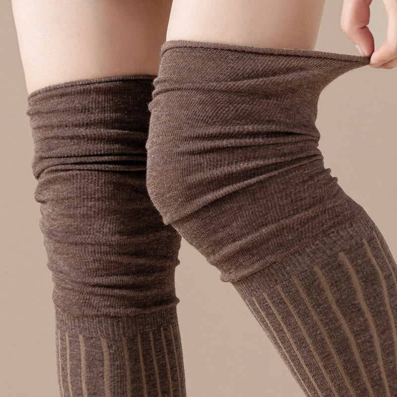 Plusock Solid Color Thigh High Socks(2 Pairs)